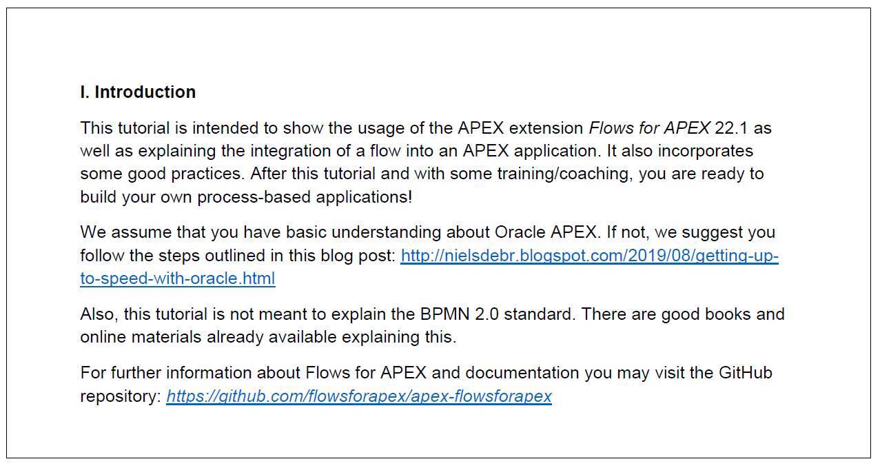 This tutorial provides an introduction to the usage and integration of Flows for APEX into a process-driven APEX application. We also provide a light version of this tutorial in the documentation, accessible by clicking on Learn More. Updated for v24.1.